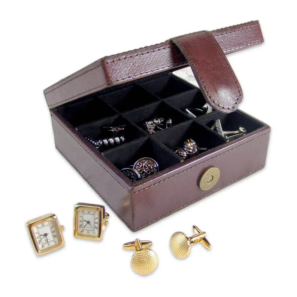 Bewaarbox voor Manchetknopen, kleur Roodbruin – 9 vakken