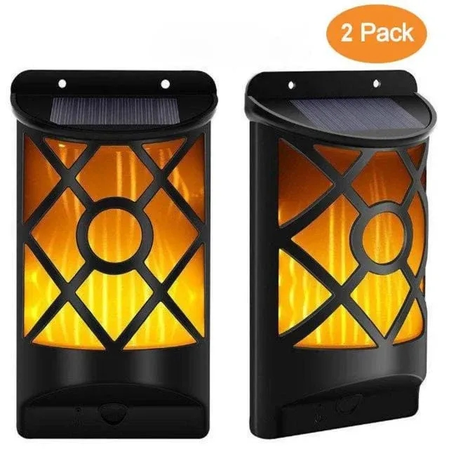 Voeg hiermee een helder en decoratief tintje toe aan uw buitenruimte Wandlampen op zonne-energie met vlameffect voor een zeer fascinerend en spectaculair effect. De 66 LED’s waaruit elke lamp bestaat, flikkeren en zorgen voor een bewegend vlameffect.